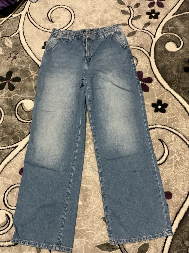 Kadın Gri Mavi Bol Kesim Kot Pantolon
