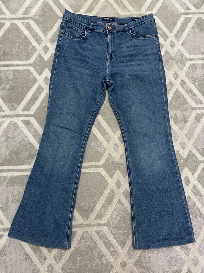 Kadınlar için bol kesim ve normal midi boyda, tokalı detaylı denim jean. Gri-mavi tonlarında, günlük rahat kullanım için uygundur.