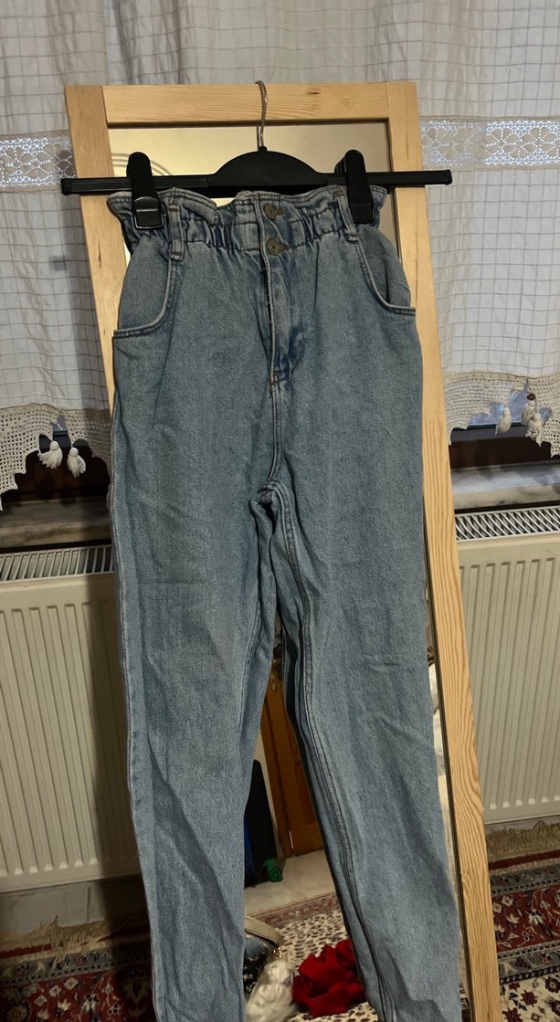 Kadın Gri Mavi Bol Kesim Midi Kot Pantolon
