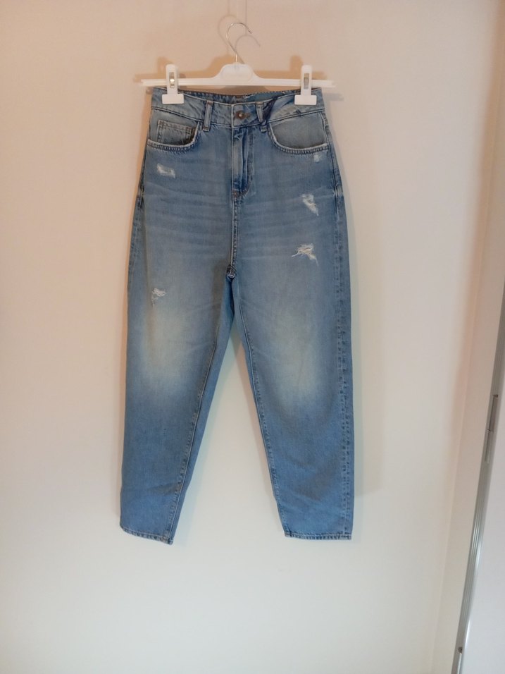Gri mavi renkte, bol kesim ve midi boy kot pantolon. Tokalı , günlük sokak stili için uygun. Bel 33 boy 100 cm paça 14 cm