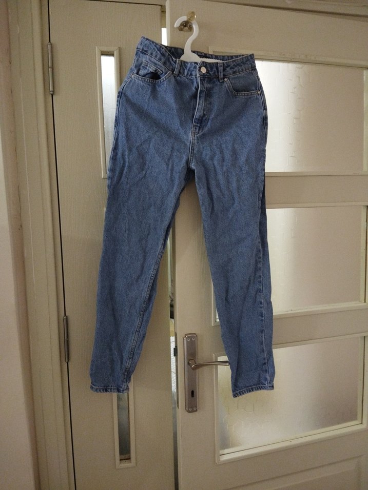 Gri tonlarında mavi bol kesim midi kot pantolon, tokalı detaylı. Rahat ve günlük kullanıma uygun.