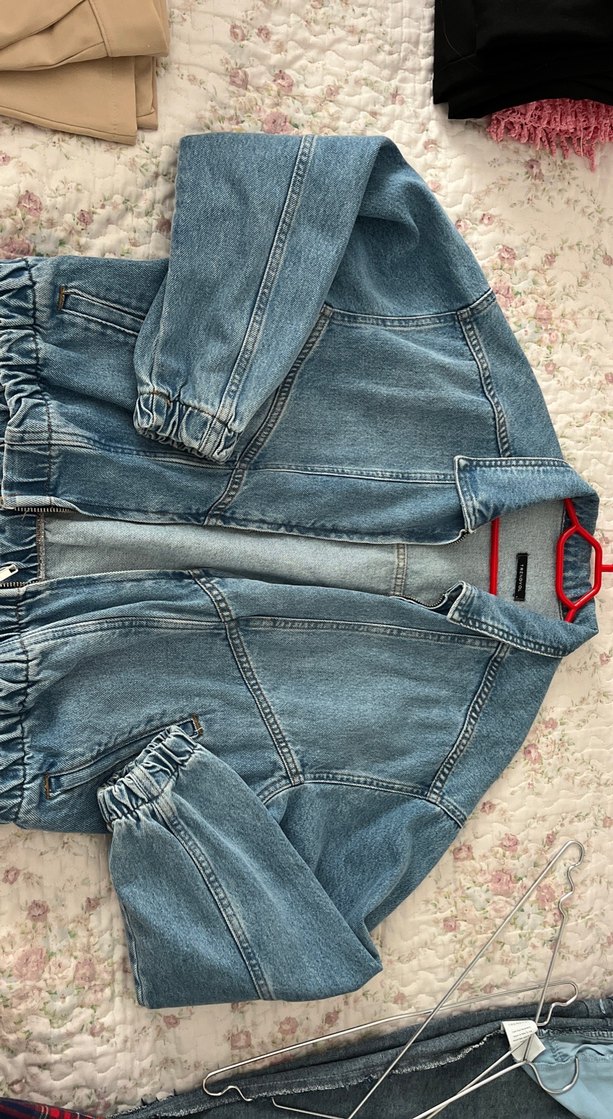Kadınlar için gri-mavi kot ceketin fermuarlı önü ve notlu yaka detayı vardır. Bol kesim ve midi uzunluktadır, günlük kullanıma uygundur.