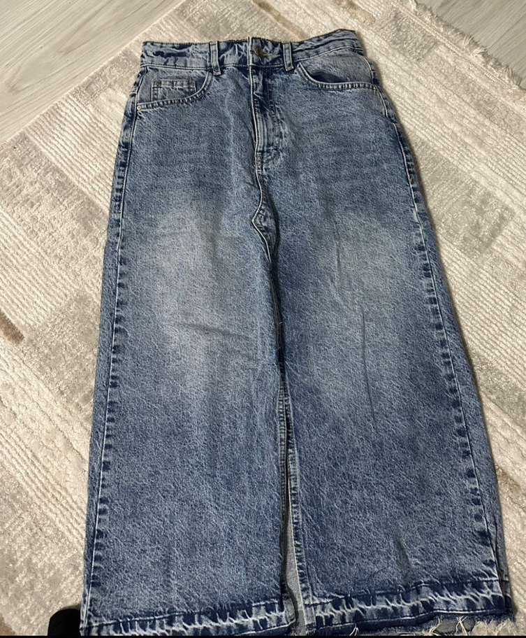 Kadın Gri Mavi Midi Bol Kesim Kot etek