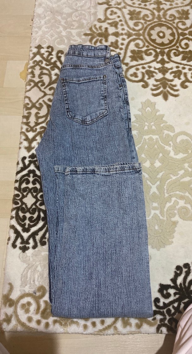 Kadın Gri Mavi Pilili Midi Kot Pantolon