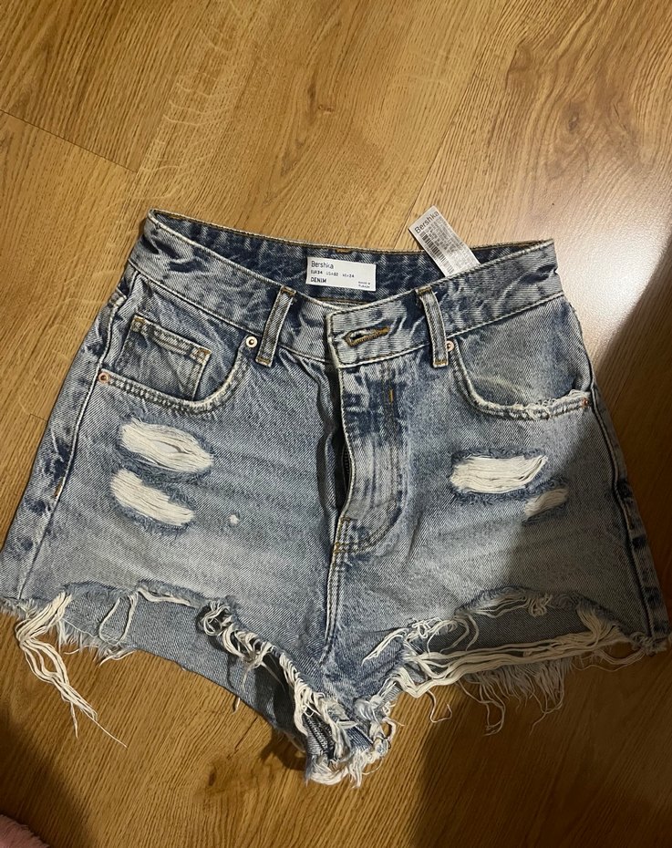 Kadın Gri Mavi Yırtık Denim Mini Şort