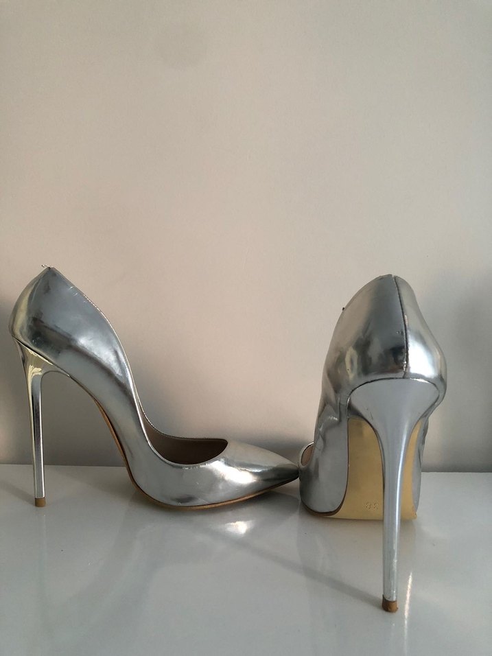 Kadın Gri Metalik Jabotter Stiletto Topuklu