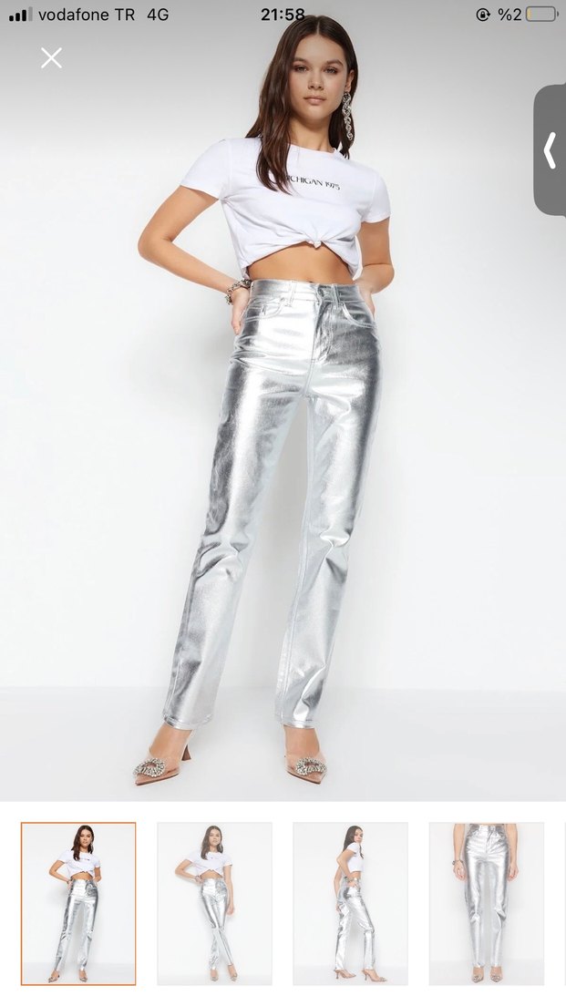 Kadın Gri Metalik Midi Jean Pantolon