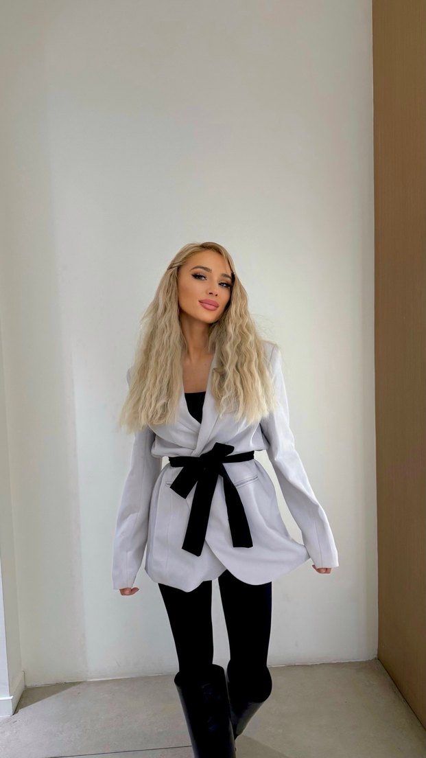 Kadın Gri Midi Blazer