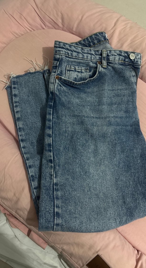 Kadınlar için gri renkte, midi boyda bol kesim kot pantolon. Tokalı detaylarla gündelik ve normcore tarzına uygun.