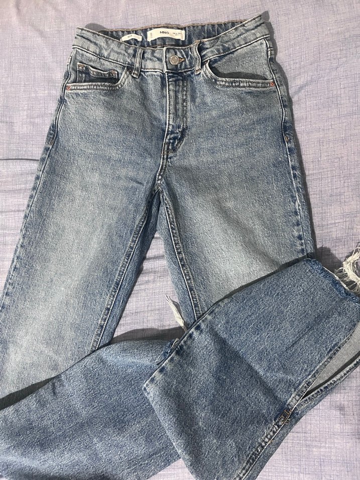 Kadınlar için regular fit ve midi boyda, yumuşak denimden yapılmış gri renkte kot pantolon. Desensiz tasarımı günlük rahat ve şık görünüme uygun. İki bacagindada yirtmac detayi var
