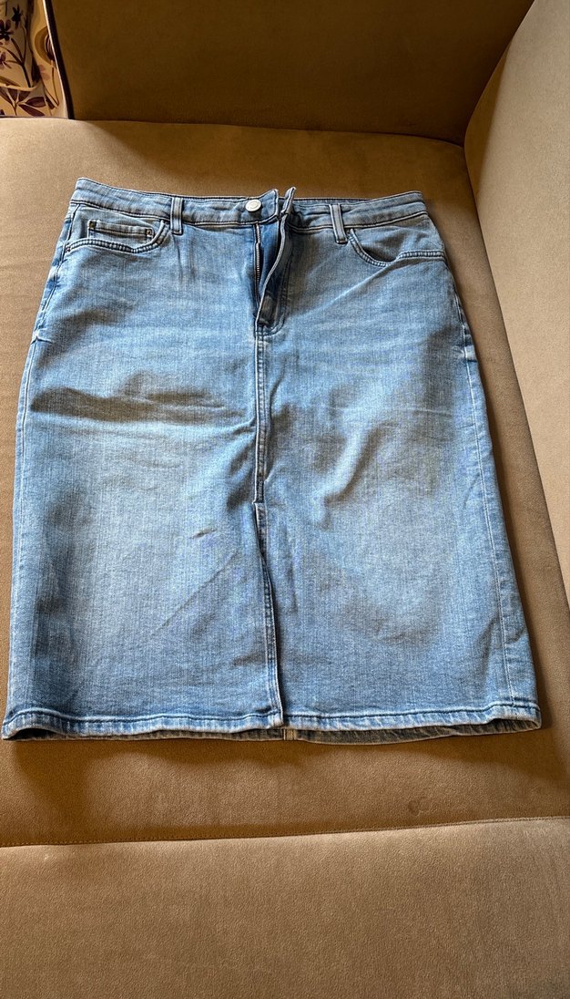 Kadınlar için gri renkte, rahat kesimli midi boy denim etek. Desensiz ve gündelik kullanıma uygun şık bir tasarım.