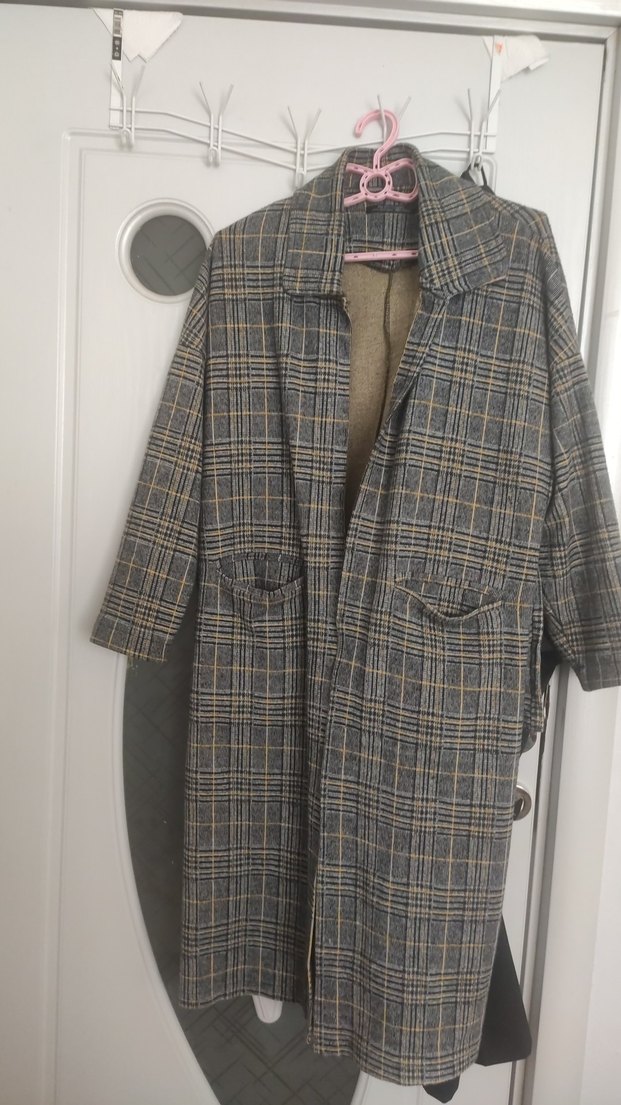 Kadınlar için gri tonlarda, düğmeli, midi uzunlukta, regular fit kaban. Uzun kollu ve yaka detaylı, sokak stili ve rahat bir tasarıma sahip.