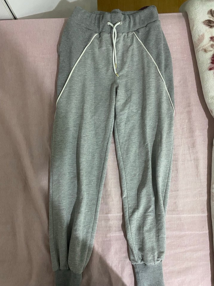 Kadınlar için fermuarlı cepleri ve lastikli beli olan gri midi eşofman altı, yumuşak sentetik kumaştan, günlük kullanım için uygundur. ♀️s bedene uygun