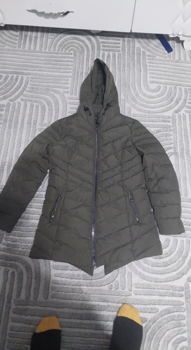 Kadın Gri Midi Mont Kapüşonlu Fermuarlı