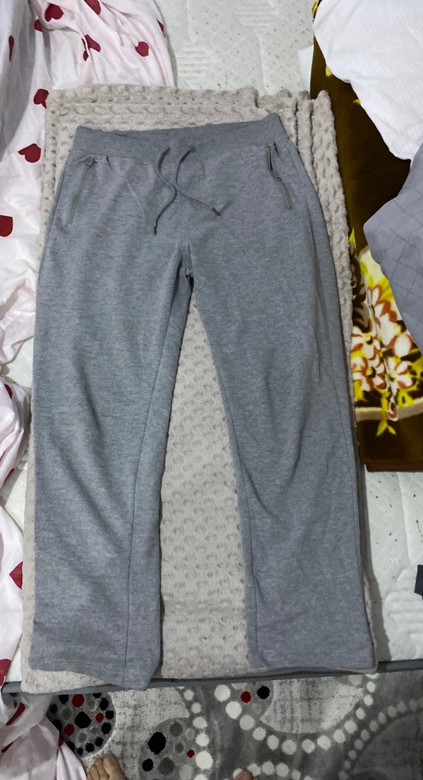 Kadın gri midi uzunlukta, yumuşak kumaştan, bol kesim sweatpant. Fermuarlı cepleri ve bağcıklı beli ile günlük kullanıma uygundur. ♀️