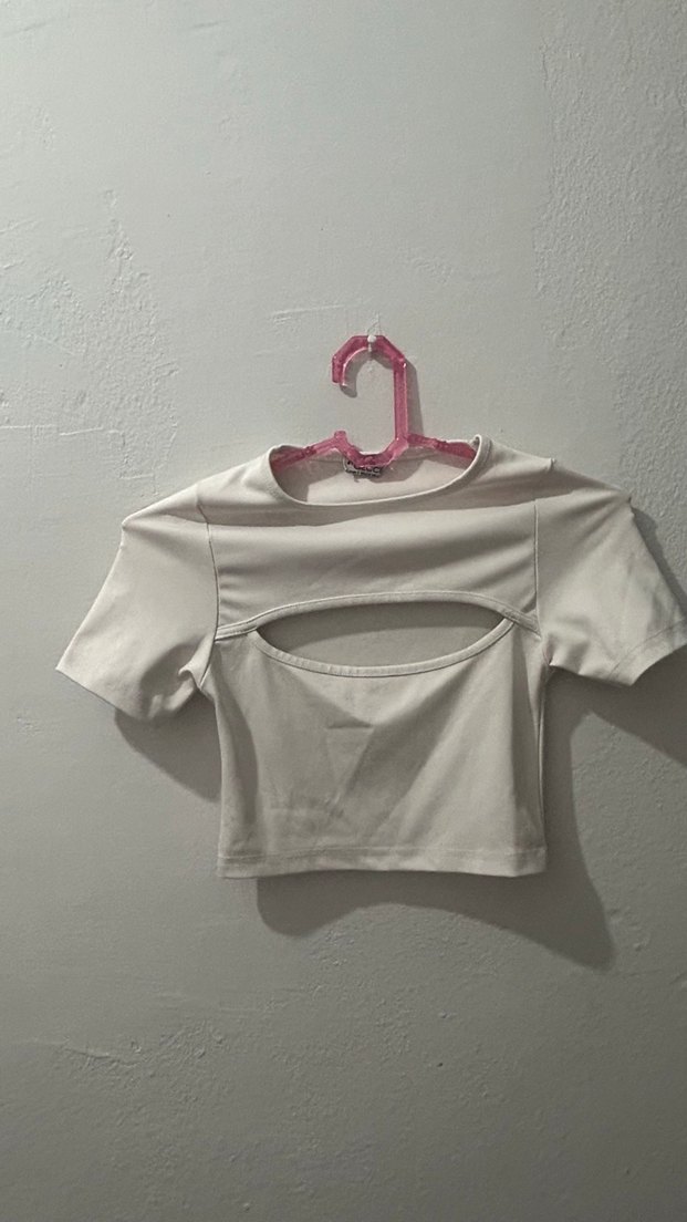 Kısa kollu, dar kesim gri crop top, yuvarlak yaka ve şık kesim detayıyla. Pürüzsüz sentetik kumaştan, günlük ve sokak stili için uygundur.
