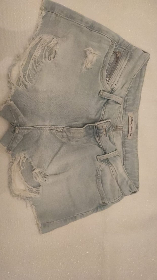 Gevşek kesim, tokalı ve yırtık detaylı gri denim mini şort, günlük sokak stili için uygun.