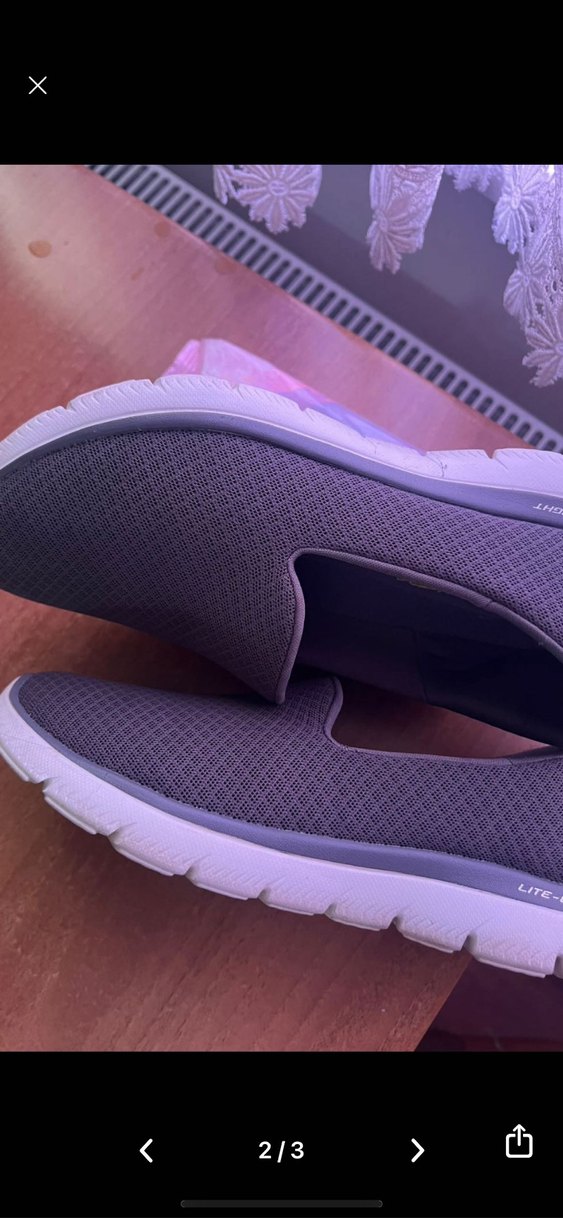 Kadınlar için gri ve mor renkte, skechers dolgu topuklu ve cırt cırtlı spor ayakkabılar. Yumuşak ve nefes alabilir üst yüzeyi, beyaz kauçuk tabanı ile günlük kullanıma uygundur. ♀️bi kere denedim yanlış numara almışım