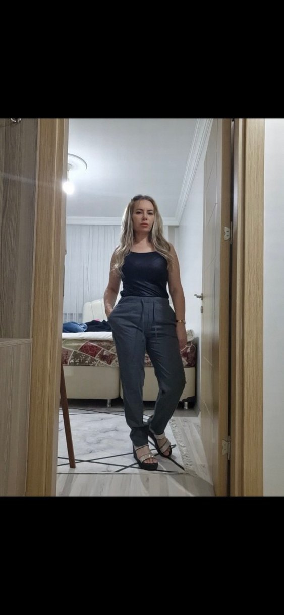 Gri renkte, normal boy ve regular fit kadın cigarette pantolon. Denim kumaştan, desen içermeyen, ofis için uygun, rahat ve şık bir stil sunar.