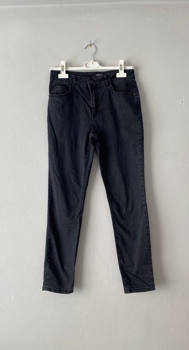 Gri renkte, normal kesim ve midi boyda kadın denim pantolon. Desensiz tasarımıyla günlük kullanıma uygun, zahmetsiz şıklık sunar.