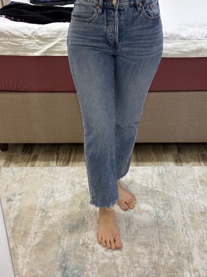 Kadınlar için normal kesim, midi boy denim kot pantolon. Gri tie-dye desenli ve kürk detaylı, gündelik rahat kullanım için uygundur.