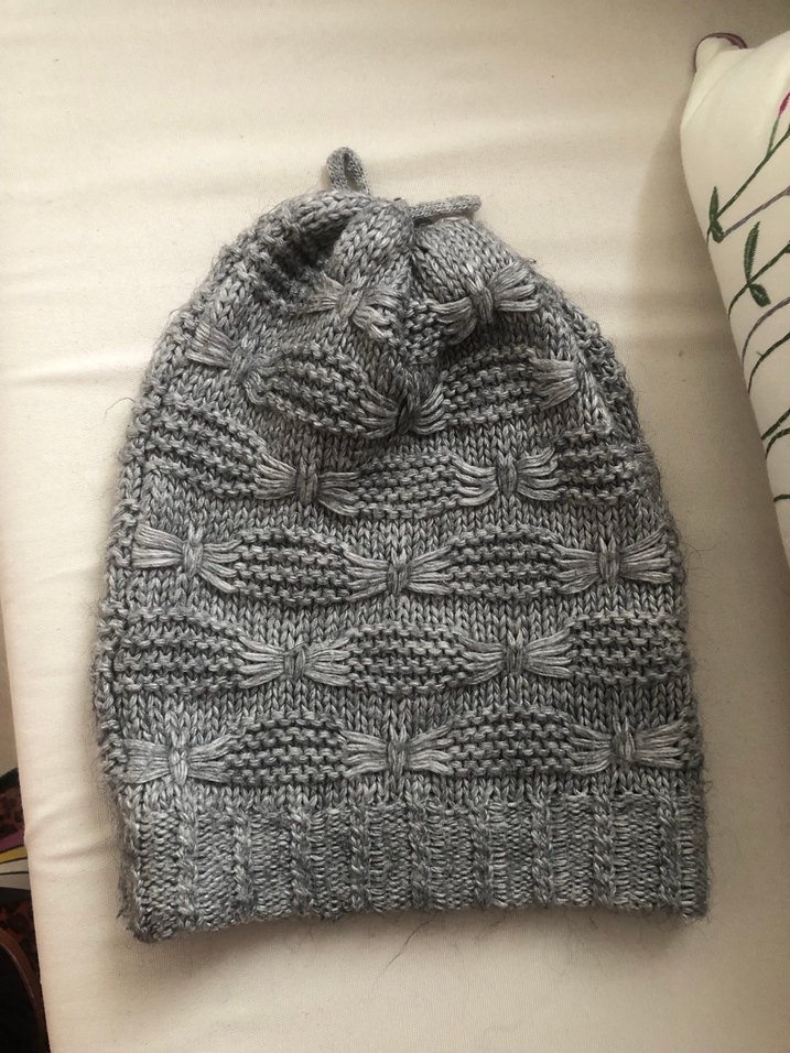 Kadınlar için gri renkli, örgü desenli, sade ve temel görünümlü bohem tarzda rahat bir bere.