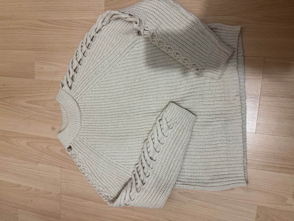 Kadınlar için gri renkli, örgü, bohem tarzda, uzun kollu ve bisiklet yaka kazak. Kollarındaki örgü detaylarıyla rahat ve şık bir görünüm sunar.