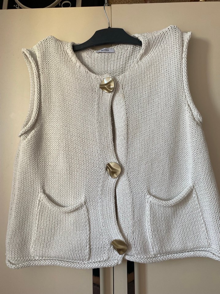 Kadınlar için gri renkte, düğmeli ve cepli, örgü dokulu, salaş kesim ve kolsuz midi yelek. Rahat ve bohem tarzda, günlük kullanıma uygun.