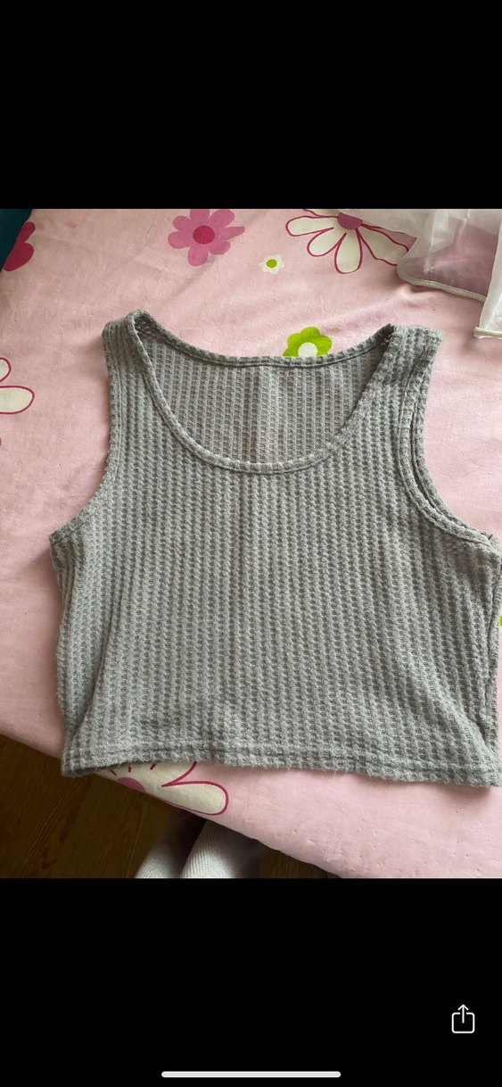 Kız çocukları için gri renkte, yumuşak örgü kumaştan yapılmış, kolsuz ve yuvarlak yakalı, düz dokulu dar kesim atlet.