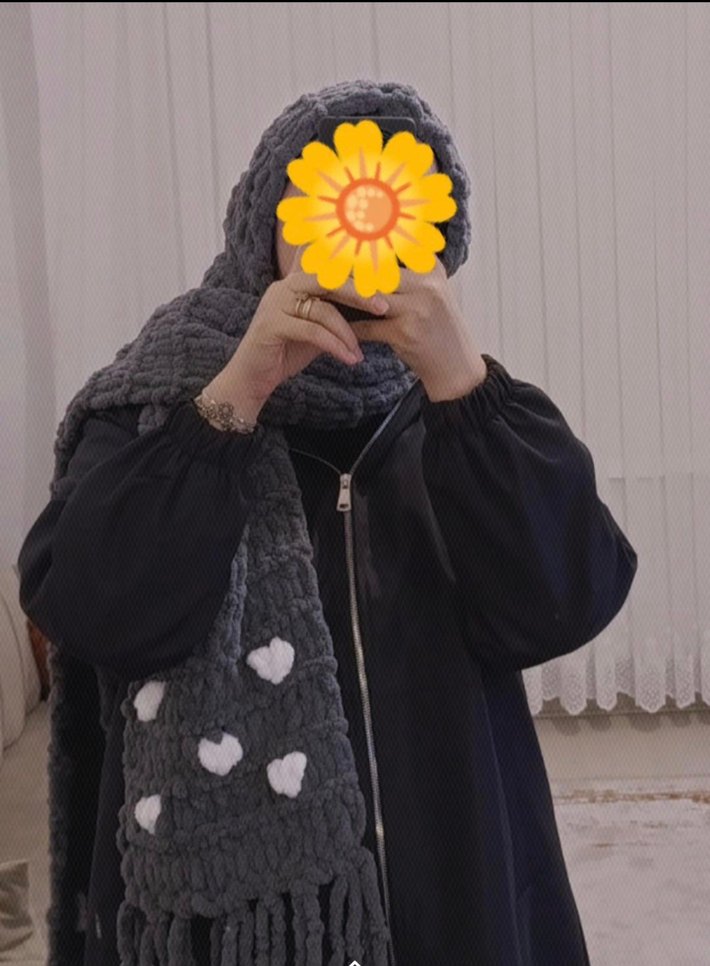 Kadınlar için koyu gri örgü şal, kalp desenleri ve rahat dokusuyla bohem veya retro tarzlara uygun. atkılı bere