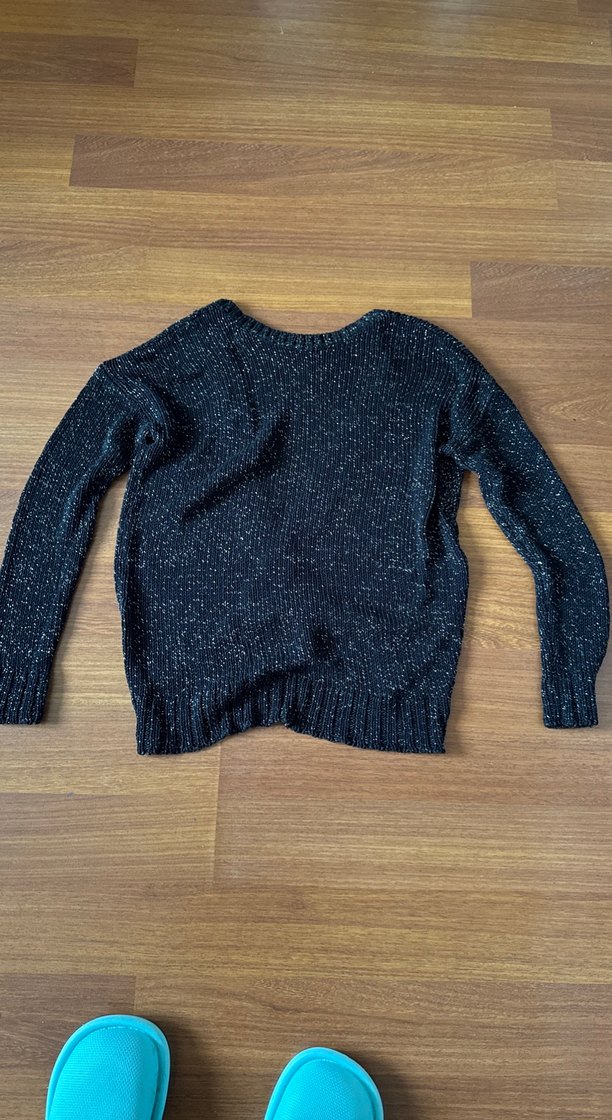 Kadınlar için örgü triko kazak, uzun kollu ve yuvarlak yakalıdır. Bol kesim ve normal uzunluktadır, koyu gri renkte rahat bir günlük kullanıma uygundur.