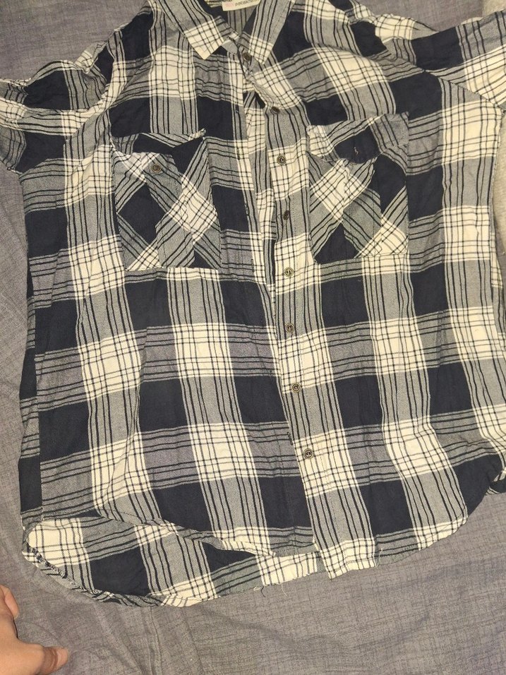 Pamuklu, düğmeli, uzun kollu, bol kesim kadın gömleği. Gri kareli deseni ve kayık yaka detayıyla günlük rahat sokak stili için uygundur.
