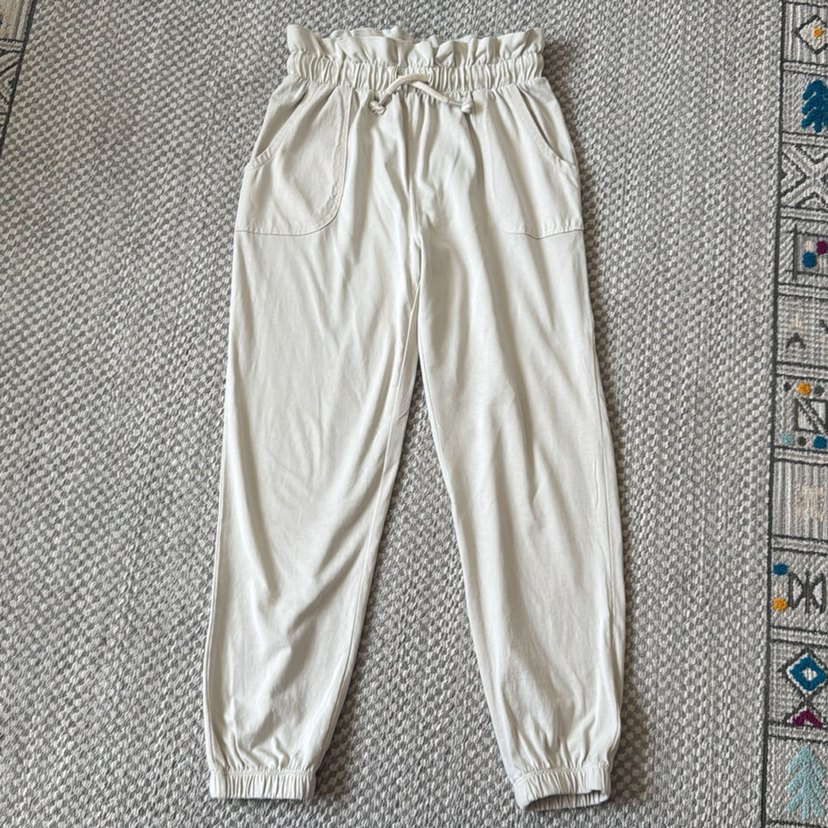 Gri pamuklu kumaştan, rahat kesim kadın pantolon. Lastikli bel ve ceplere sahip, günlük kullanım için uygun, zahmetsiz şıklık sunar.