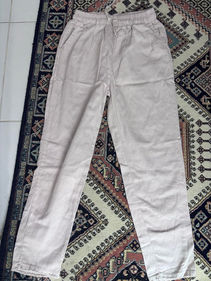Kadınlar için pamuklu, gri renkte, salaş kesim ve midi boy kumaş pantolon, günlük kullanıma uygun rahat ve şık.