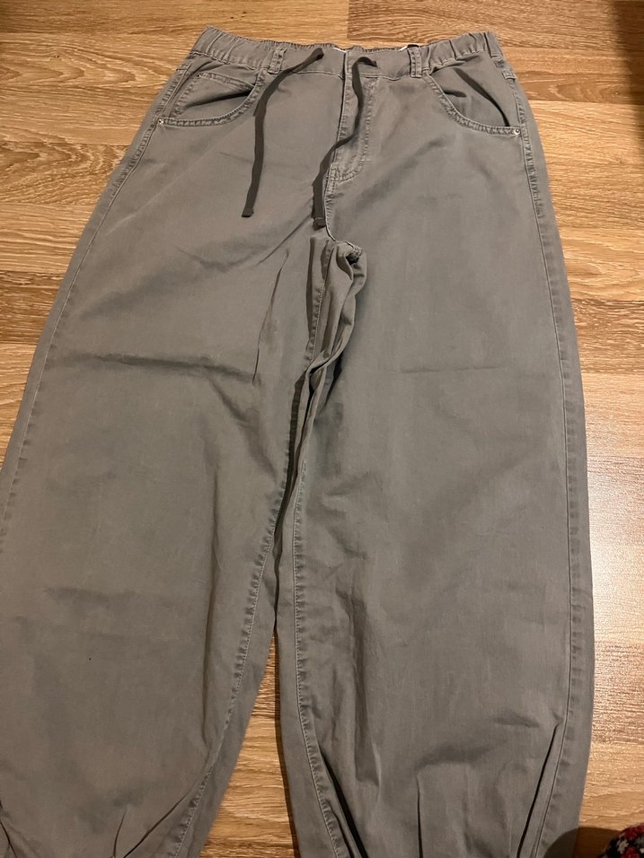 Gri keten kumaştan, salaş kesim ve günlük rahat normcore tarzda.