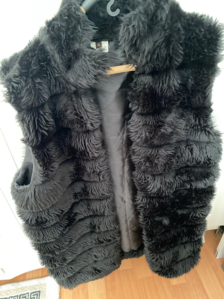 Yüksek yakalı, gri renkli, peluş detaylı, fitted kesim kadın yelek. Midi uzunlukta ve kolsuz tasarımıyla günlük kullanıma uygundur.