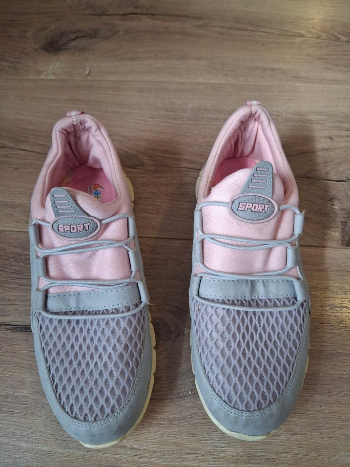 Kadınlar için gri ve pembe tonlarında, bağcıklı ve dolgu topuklu spor ayakkabılar. Kauçuk tabanlı, desen içermeyen sokak stili rahatlığı sunar. ♀️