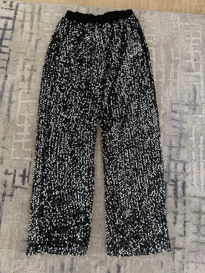 Gri renkli, pileli detaylara sahip, rahat kalıplı kadın pantolon. Elastik bel bandı ile günlük kullanıma uygundur. 1 kere düğünde giyildi.