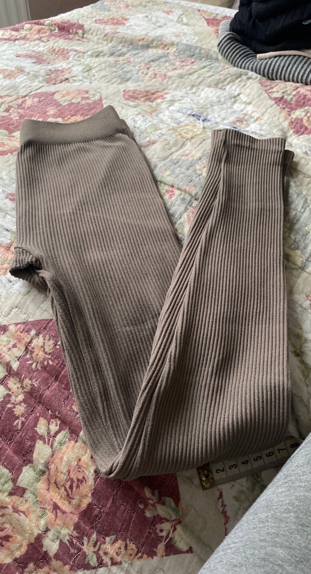 Kadınlar için gri renkli, pileli ve uzun kesim tayt. Yumuşak sentetik kumaştan yapılmış, günlük kullanım için rahat ve vücuda oturan tasarım. ‍♀️