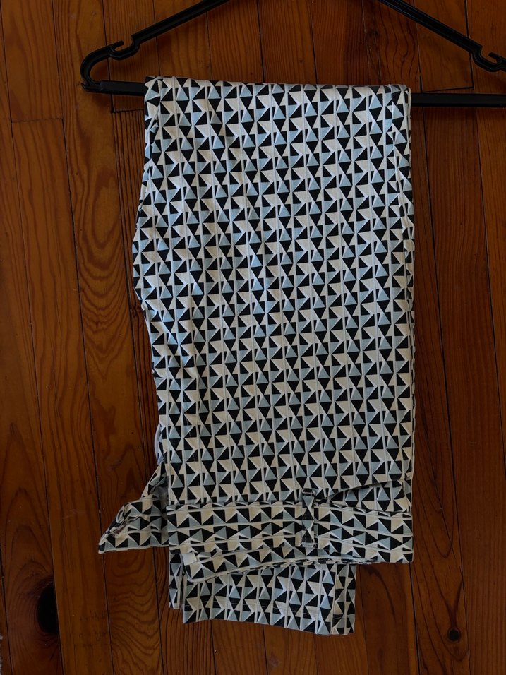 Gri tonlarda tie-dye desenli, pilili uzun kadın pantolonu. Yumuşak sentetik kumaştan, regular fit, günlük kullanıma uygun.