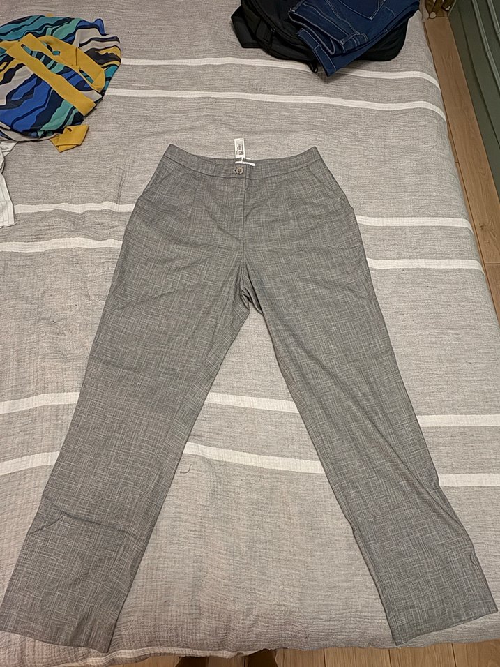 Gri renkte, regular fit kesim, pamuklu kumaştan üretilmiş, pile detaylı midi boy kadın pantolonu. Günlük kullanıma uygundur.