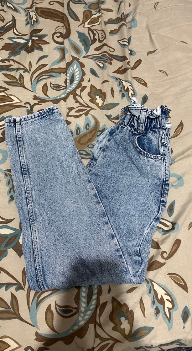 Gri renkli, bağlamalı beli fırfırlı bol kesim kadın jean, günlük sokak tarzı için uygun.