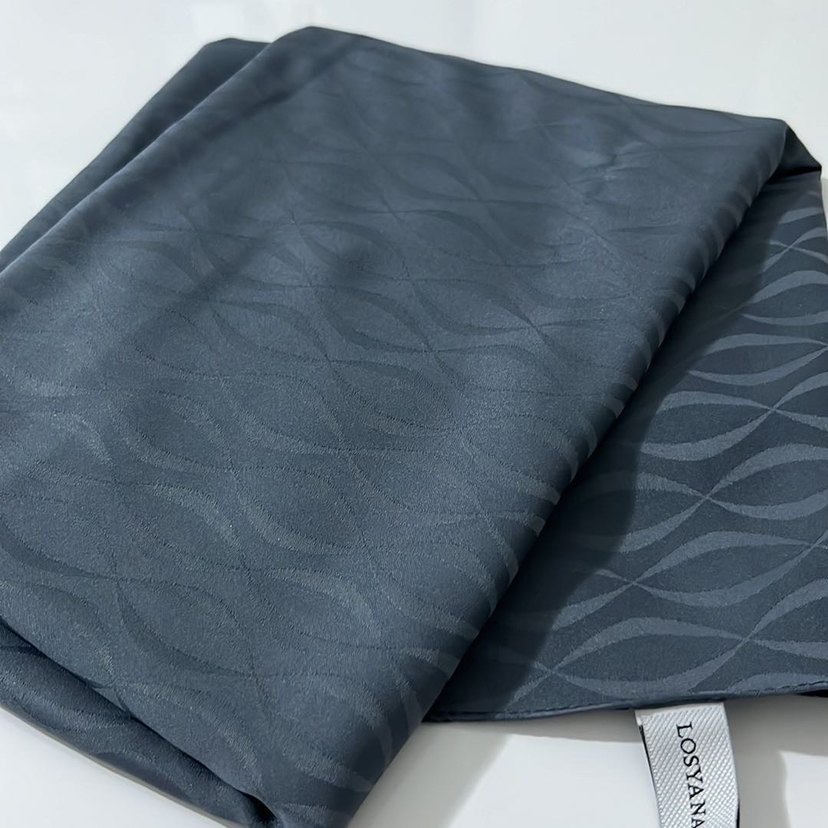 Kadınlar için gri renkte, pliseli ve ince desenli, yumuşak sentetik kumaştan yapılmış minimal ve modern şal. ️