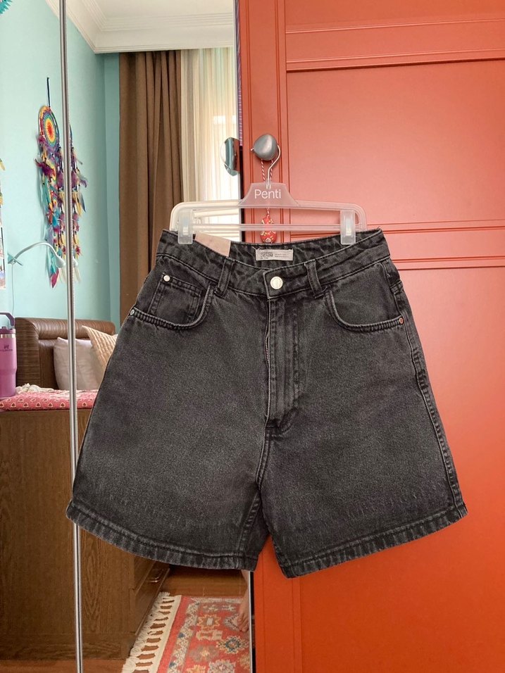 Koyu gri renkte, salaş kesim ve kısa boyda kadın denim şort. Desensiz yapısıyla günlük sokak modasına uygun, zahmetsiz şıklık sunar.