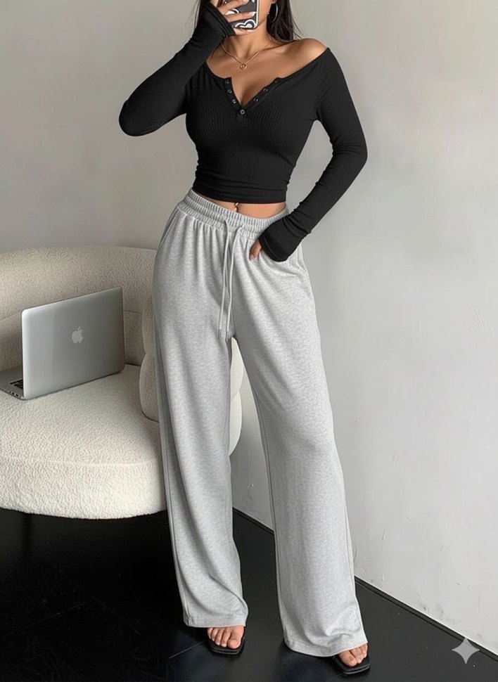 KADIN GRİ ŞARDONLU BOL PAÇA EŞOFMAN