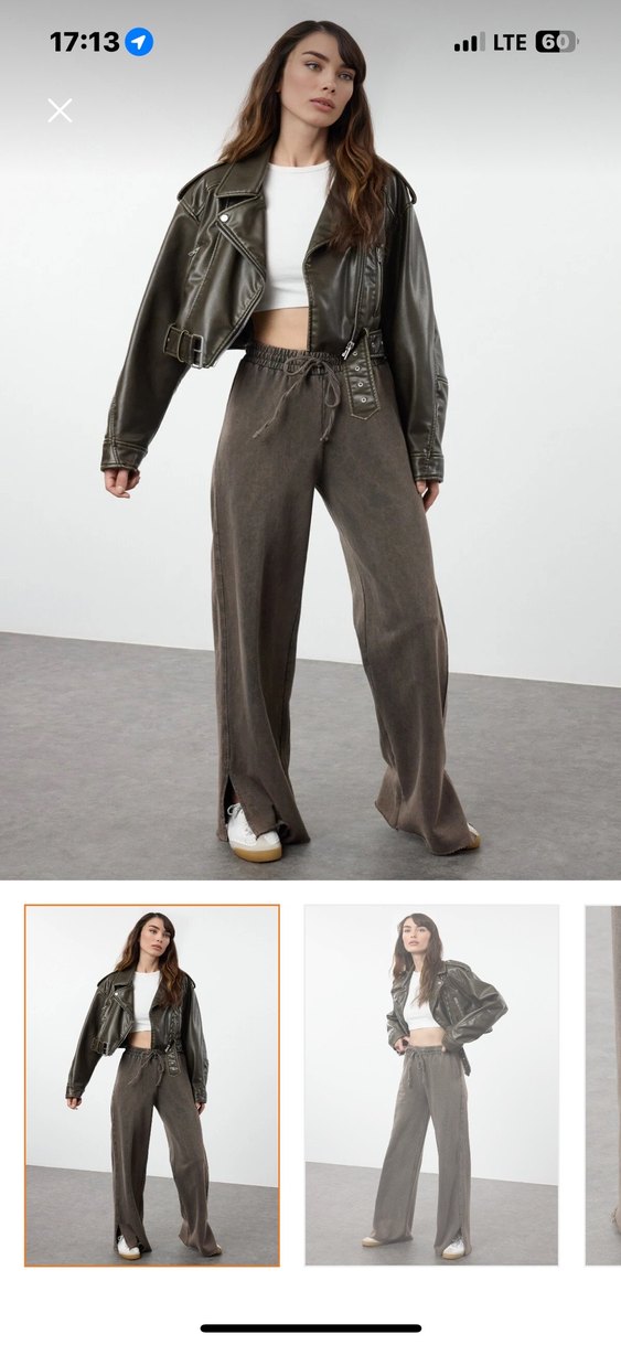 Kadın Gri Süet Bol Kesim Kemerli Pantolon