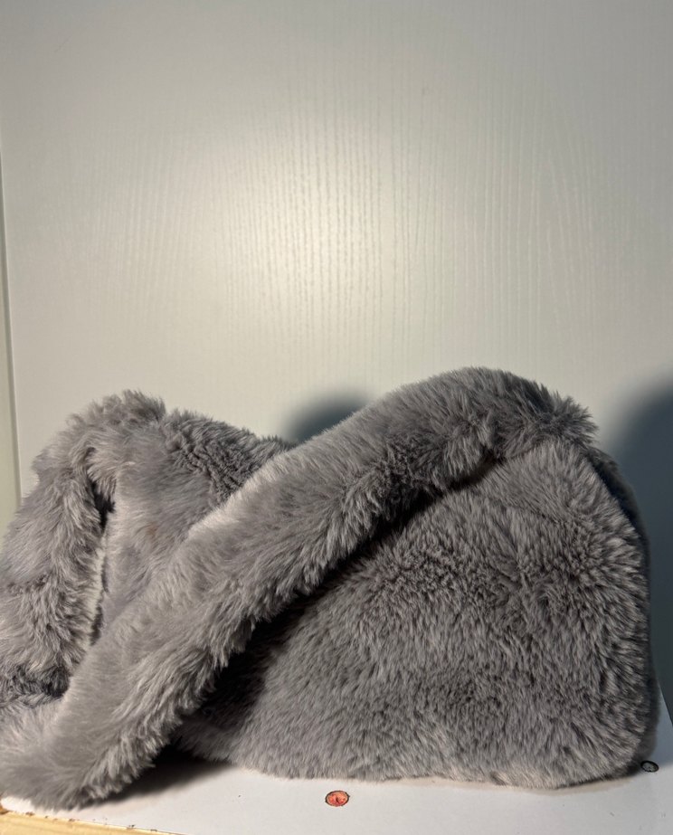 Gri renkte,kürk çanta . Yumuşak polar dokulu çanta.