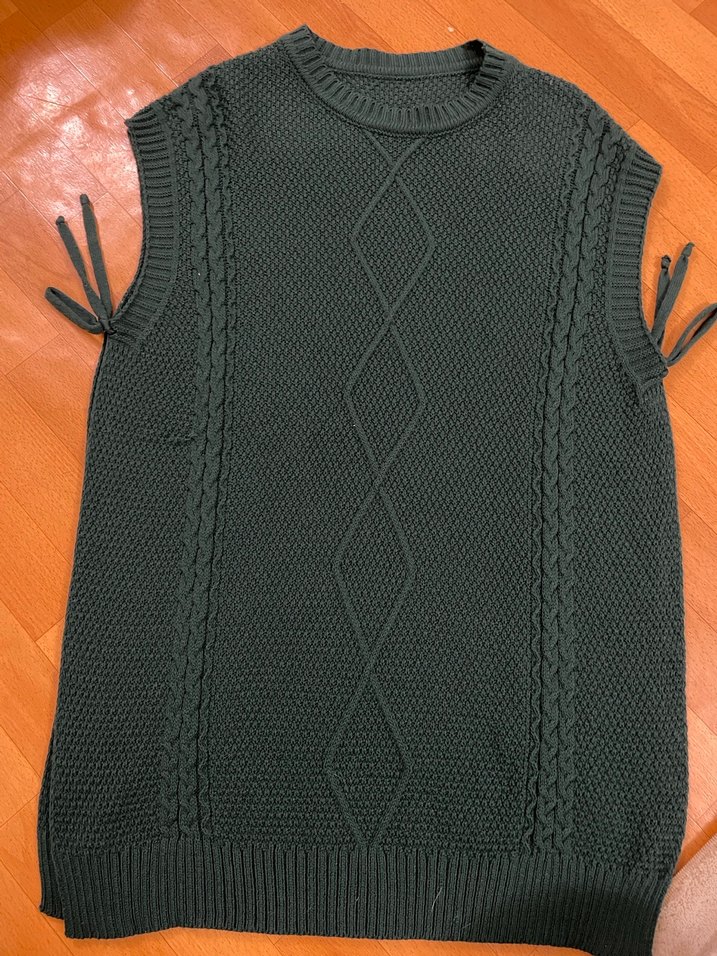 Koyu gri renkli, kolsuz, kruvaze yaka ve detaylı örme desenlere sahip, midi boy ve vücuda oturan kadın triko süveter.