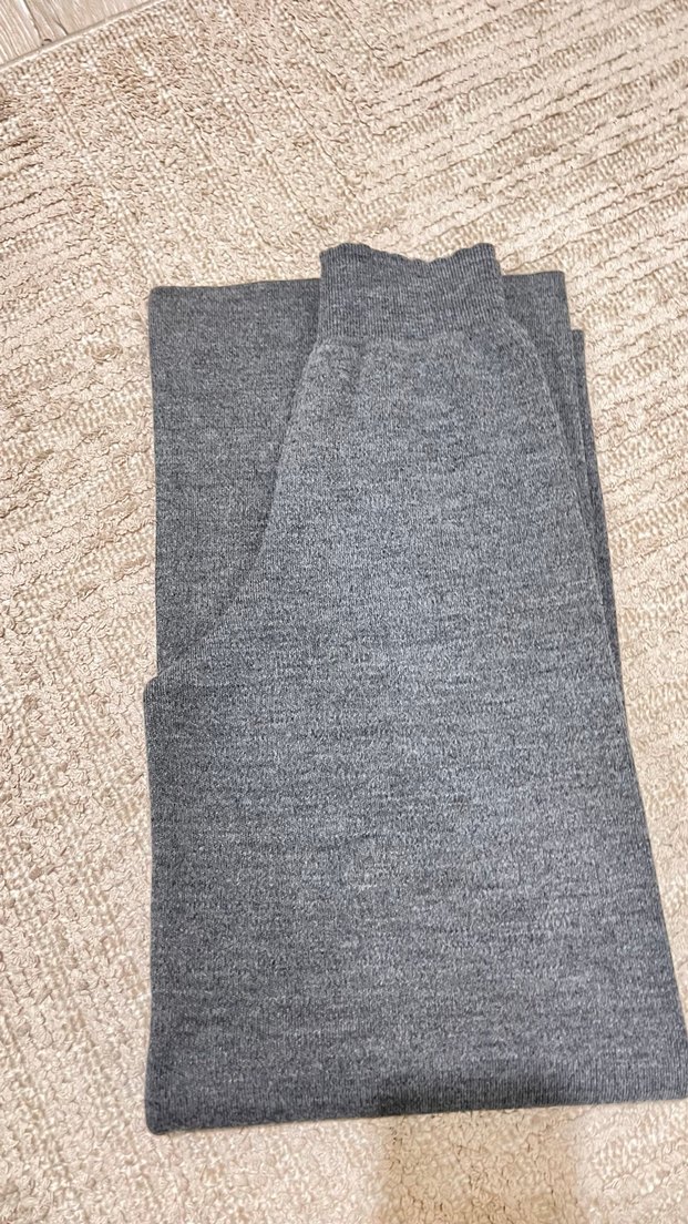 Kadınlar için uzun gri pantolon, yumuşak örgü yün kumaştan, düz ve rahat kesimle günlük kullanıma uygundur. Hiç giyilmedi boyu uzın geldi