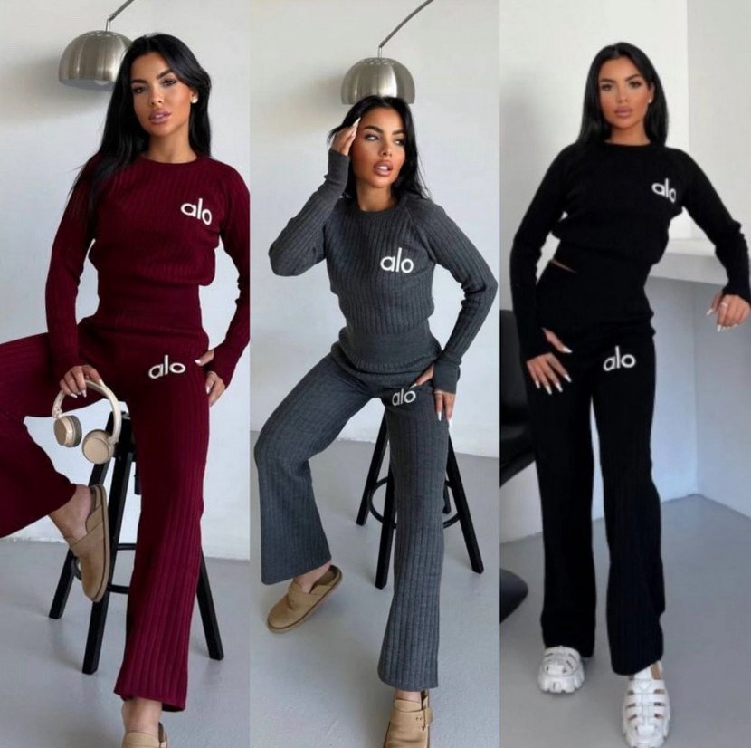 Kadınlar için triko, rahat kesim, uzun kollu ve bisiklet yaka eşofman takımı. Nakışlı detaylar ve "alo" logosu ile günlük sokak stiline uygun.